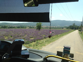 Campos de lavanda vistos desde el bus público